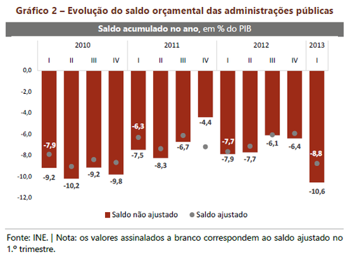 Fonte: Análise da conta das Administrações Públicas no 1.º trimestre de 2013 (Conselho das Finanças Públicas, 17 de julho de 2013)