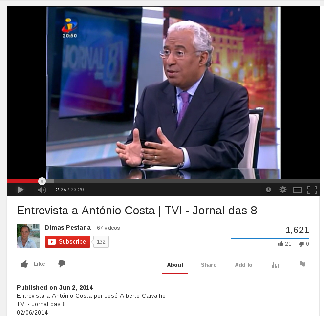 Haverá múltiplos indicadores dessa expectativa. Este é só mais um: em menos de 24 horas a entrevista de António Costa colocada no Youtube já tem mais visualizações que a entrevista homóloga de António José Seguro à TVI no sábado e publicada no domingo (faz aproximadamente 48 horas.)