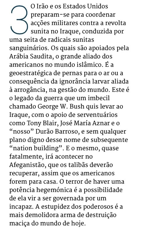Miguel Sousa Tavares (Expresso, 22/6/2014) sobre mais uma nova fase explosiva no Iraque: