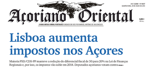 Era uma vez uma nova versão da Lei das Finanças Regionais. Uma nova e pequena e grande e bela proposta de Lei das Finanças Regionais, nascida por obra da graça dos técnicos governamentais (ainda nos tempos áureos do Dr. Gaspar) que teve a bênção dos deputados da nação na generalidade e na especialidade. Tudo nos conformes para esta fresquinha lei das finanças das regiões autónomas da pátria. A dita futura lei é composta por uma variedade de artigos e especificações, uns mais prendados e outros, enfim, mais estultos. Mas a alteração mais esdrúxula será talvez aquela que decorre da nova redacção do artigo 59º, onde notamos que, surpresa surpresa, o governo decidiu aumentar os impostos. Outra vez. Desta vez somente nos calhaus lá perdidos a norte das ilhas Selvagens. A proposta de lei do governo reduz o diferencial fiscal que é aplicado aos impostos das regiões autónomas de 30 para 20% dos impostos do continente. Ou seja, reduz a margem de redução dos impostos que os governos das regiões autónomas possuíam, aumentando assim a carga fiscal aos madeirenses e açorianos. Mas o choque fiscal será superior nas terras das vacas sorridentes no que nos domínios de Alberto João, dado que este já aumentou uma grande parte dos impostos do arquipélago no âmbito do desastre financeiro criado por sua excelência lá na terra. Nos Açores, todavia, o diferencial de 30% é plenamente aplicado. E a partir de 1 de Janeiro de 2014, esse diferencial reduzir-se-á, provocando uma imediata subida generalizada dos impostos na região. Dado que as receitas fiscais recolhidas nas nove ilhas ficam na região (artigo 19º e 90º do horror do Cavaco), pergunta-se: onde está a racionalidade económica em aumentar impostos numa região em recessão, onde o governo obteve no ano passado um défice 0,4% e uma dívida regional de 19%? Sim, leu bem, o défice da Região Autónoma dos Açores em 2012 foi de 0,4% (uma redução de 50% face a 2011) e a divida da administração regional foi de 19% (0,4% de toda a divida pública nacional). Pois bem, mesmo tendo isto em conta, e uma oposição que além de incluir o próprio Governo Regional dos Açores e todos os partidos da esquerda parlamentar também abarca o próprio PSD/Açores, que anunciou que os seus três deputados iriam votar contra esta proposta de lei (tal como já o tinham feito aquando da votação na generalidade, juntamente com os deputados madeirenses do PSD e do CDS), o aumento avançará. Sendo assim, porque insiste o nosso renovado governo neste fundamentalismo fiscal? Pois bem, a justificação oficial é uma clássica: a troika exige. Ali, nas páginas 4 e 5 do Memorando de Entendimento sobre as Condicionalidades de Politica Económica, onde (no caso do IRS) se pode ler "propor alteração à Lei das Finanças Regionais para limitar a redução das taxas em sede de IRS nas regiões autónomas a um máximo de 20% quando comparadas com as taxas aplicáveis no continente". Ponto final, sem discussão. Ora bem, se é verdade que a versão original tinha esta particularidade inexplicável, é também verdade que desde a sua entrada em vigor os memorandos já foram objecto de sete (!) revisões. Sete oportunidades de alterar esta enormidade. Sete alturas em que um governo lógico e não-submisso podia ter alterado esta exigência sem sentido. Sete momentos em que os nossos governantes podiam ter usado a alegada 'autonomia para propor' mudanças. Sete situações desperdiçadas pela personificação da incompetência que é este Governo Constitucional remendado.