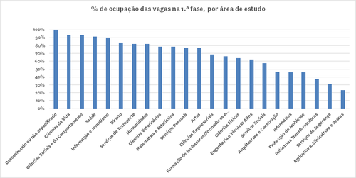 - A área da agricultura, silvicultura e pescas é a que tem menor taxa de ocupação de vagas e é a quarta com menor número de colocados.