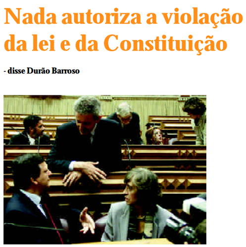 Resumindo e concluindo: o senhor presidente da Comissão Europeia, figura com a maior legitimidade democrática da galáxia para pregar sermões, diz que isto is not going very well. Que há coisas, cenas, gentes que estão atrapalhar um processo que pugna pelo brilhantismo brilhante e pelo rigor rigoroso. E, portanto, sublinha aos papalvos dos juízes do Tribunal Constitucional o seguinte: minhas criaturas, parem de atrapalhar o ajustamento, que estamos a tentar ajustar a nação e vossas excelências, chatarronas, não estão bem a ver o cenário. Os senhores juízes, do Tribunal Constitucional e de todas as outras terras deste condado português, têm que cumprir o programa de ajustamento. Já os técnicos troikanos o sublinharam. Lixem-se as leis, lixe-se a Constituição, lixe-se o Estado de Direito, a Comissão Europeia só está cá para vos aturar se o programinha de ajustamento for cumprido por todos os órgãos de soberania. Todos. Viola-se a lei e a Constituição? Olha, chapéu.