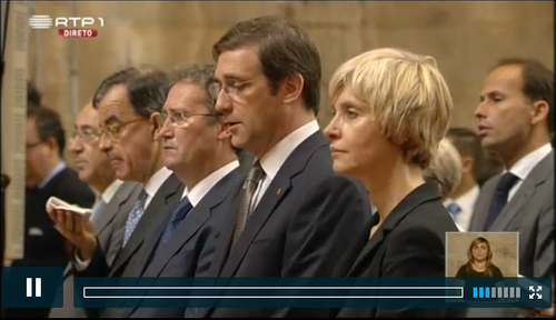 E estavam estas figuras presentes nos Jerónimos enquanto altos dignitários do Estado? Parece que sim, pois havia meia dúzia de filas especialmente reservadas para suas excelências, tendo a disposição de lugares respeitado o protocolo de Estado, com a Presidente da Assembleia da República, o Primeiro-Ministro, o Presidente do Supremo Tribunal de Justiça e o Presidente do Tribunal de Contas na 1ª fila e os ministros Paulo Portas e Pedro Mota Soares na 2ª fila. E o Presidente da República? Pois bem, tinha dois cadeirões, dois tronos, especialmente reservados para ele e para a sua mulher...